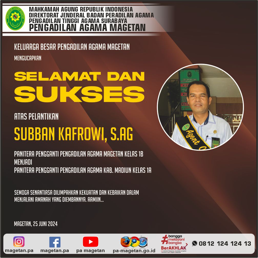 Selamat & Sukses Subban Kafrowi, S.Ag Written by Admin on 25 June 2024. Written by Admin on 25 June 2024. Hits: 724