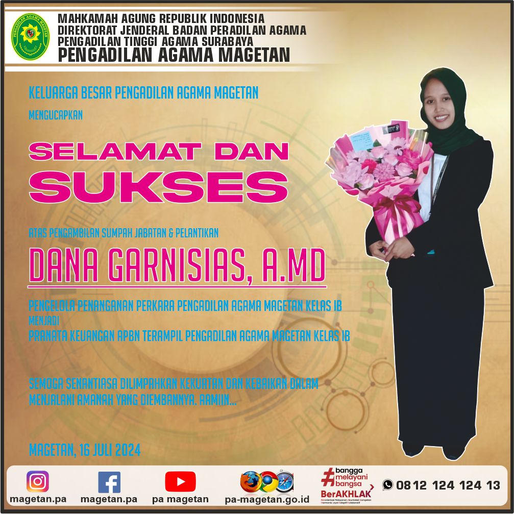 Selamat & Sukses Dana Garnisias, A.Md Written by Admin on 16 July 2024. Written by Admin on 16 July 2024. Hits: 646
