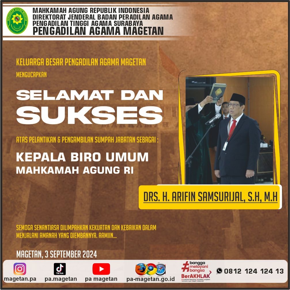 Selamat & Sukses Bp. Drs. H. Arifin Samsurijal, S.H., M.H Written by Admin on 03 September 2024. Written by Admin on 03 September 2024. Hits: 699