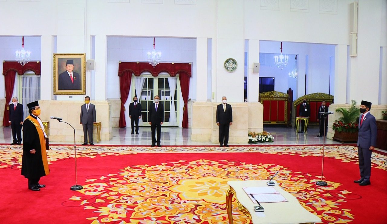Jakarta – Humas: Dr. H. Muhammad Syarifuddin, SH., MH. mengucapkan sumpah sebagai Ketua Mahkamah Agung Republik Indonesia di hadapan Presiden Republik Indonesia Joko Widodo pada Kamis, 30 April 2020 pukul 9.30 WIB, di Istana Negara, Jakarta. Pengucapan sumpah ini menandakan bahwa Dr. Syarifuddin kini resmi menjadi Ketua Mahkamah Agung Periode 2020-2025. Hakim Agung kelahiran Baturaja ini menggantikan posisi Prof. Dr. M. Hatta Ali, SH., MH., yang telah memasuki masa pensiun. Pelaksanaan pengucapan sumpah ini berdasarkan Surat Keputusan Presiden Republik Indonesia No: 41/P Tahun 2020 tentang Pemberhentian dan Pengangkatan Ketua Mahkamah Agung.