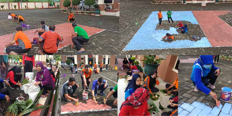 Halaman yang mulai kusam dibersihkan dan di cat dengan warna-warna segar sehingga kelihatan lebih bersih dan indah dilihat. Tak ketinggalan, ibu-ibu penuh semangat menanam bunga untuk dijadikan penghias Kantor, menggantikan bunga-bunga plastik yang selama ini menghiasi ruangan di kantor.