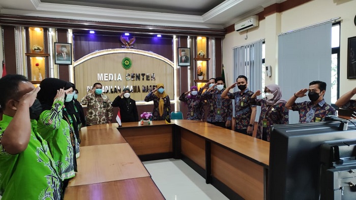 Ditempat terpisah, karyawan dan karyawati Pengadilan Agama Magetan mengikuti Upacara Peringatan Hari Kesaktian Pancasila Tahun 2021 dari Ruang Media Center Pengadilan Agama Magetan.