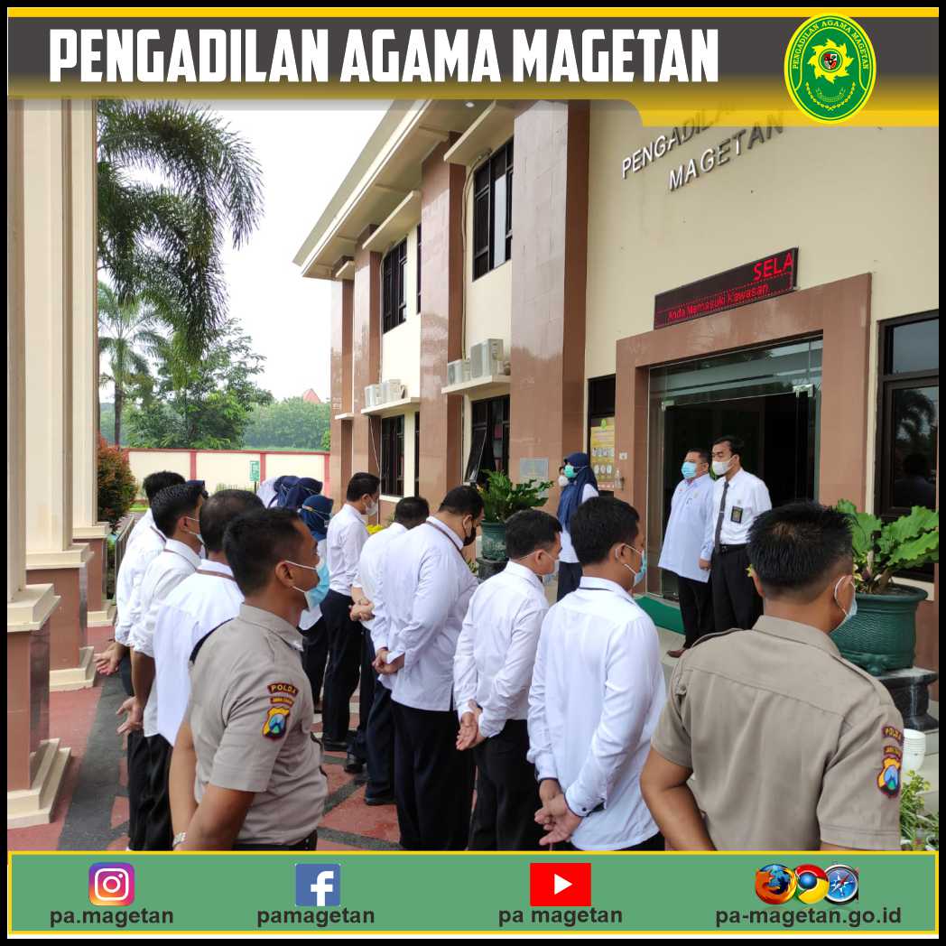 Apel Senin pagi tanggal 20 Desember 2021 dipimpin oleh ibu Nurul Fauziah, S.Ag Hakim Pengadilan Agama Magetan, dalam arahannya beliau menyampaikan bahwa dalam melaksanakan perkerjaan harus sesuai dengan Job Discription dan dengan penuh keikhlasan. Jangan bekerja hanya demi mencari pujian dari teman atau atasan akan tetapi harus didasari mencari ridho dari Allah Swt. Selain itu beliau juga mengingatkan untuk perkara Permohonan yang buktinya banyak agar bagian Pendaftaran perkara mengingatkan dan menjelaskan kepada para pihak untuk juga membawa bukti aslinya. Dan apabila sidang telah selesai petugas sidang jangan lupa untuk mematikan lampu dan Ac di Ruang Sidang. Apel ditutup dengan dengan do’a bersama.