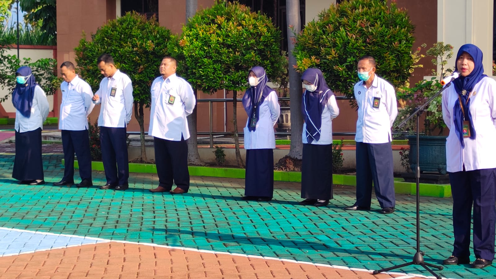 Magetan | pa-magetan.go.id | Pengadilan Agama Magetan melaksanakan apel Senin Pagi, 06 Juni 2022, yang dipimpin oleh Sekretaris Pengadilan Agama Magetan (St. Mar’atu Ulfah, S.Ag). Dalam amanatnya Beliau menyampaikan menindaklanjuti Surat Edaran Tentang Pelaksanaan Apel di Lingkungan Pengadilan Tinggi Agama Surabaya, No. W13-A/3054/HM.00/6/2022 tertanggal 3 Juni 2022, bahwa waktu pelaksanaan apel Pengadilan Agama Se-Jawa Timur adalah Pukul 07.30 untuk Apel Senin Pagi dan Pukul. 15.30 untuk apel Jum'at Sore.