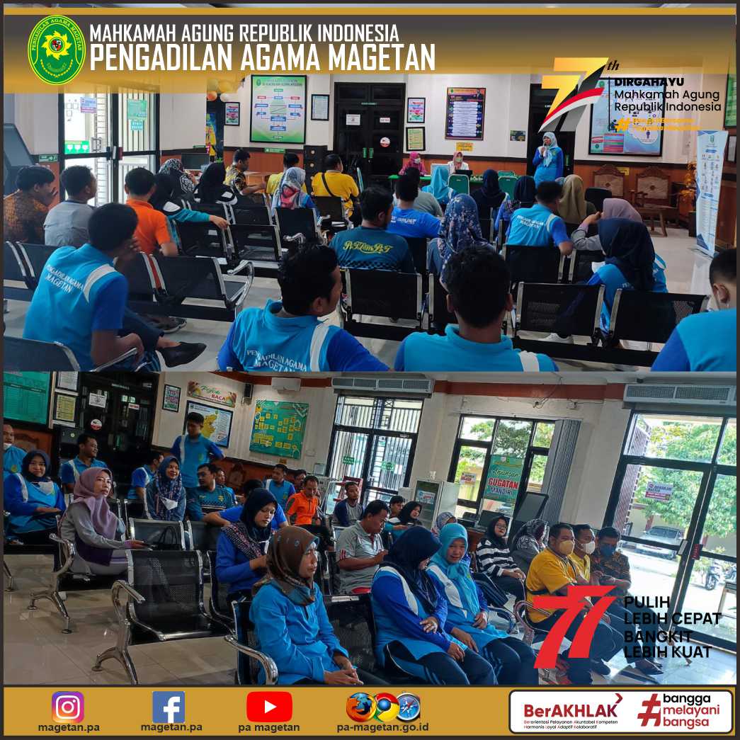 Kegiatan yang dilaksanakan di Pengadilan Agama Magetan ini merupakan salah satu kegiatan dalam rangkaian Peringatan Dirgahayu Republik Indonesia Ke 77 dan HUT Mahkamah Agung RI Ke 77 yang jatuh pada bulan Agustus ini. Cek kesehatan dan konsultasi kesehatan ini diberikan secara gratis kepada seluruh Aparatur Pengadilan Agama Magetan.