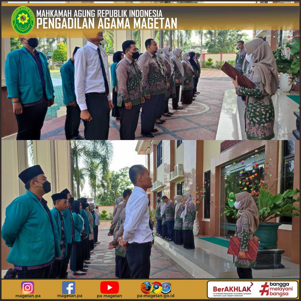 Selamat berlibur bersama keluarga, mengistirahatkan pikiran kita dan terus mendekatkan diri kepada Allah SWT. Semoga minggu depan bisa kembali beraktivitas pada hari Senin depan dengan semangat baru. Apel diikuti oleh seluruh pegawai Pengadilan Agama Magetan dan diakhiri dengan do'a.