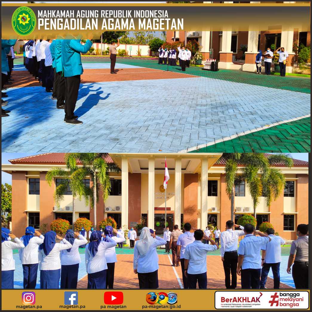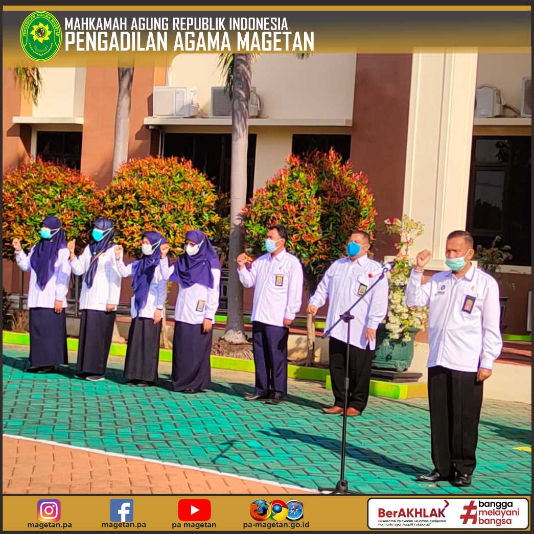 Magetan | pa-magetan.go.id | Pengadilan Agama Magetan melaksanakan kegiatan Apel Senin pagi, Apel kali ini dipimpin oleh Ketua Pengadilan Agama Magetan (YM. Dr. Drs. Sugeng, M.Hum.). Dalam arahannya beliau menyampaikan ucapan syukur dapat melaksanakan apel Senin pagi pada hari ini dengan sehat dan lancar. Apel itu sebagai bentuk kedisiplinan pegawai, dengan melaksanakan apel seluruh pegawai dapat memupuk kedisiplikan dalam melaksanakan pekerjaan. Didalam apel juga dapat melaksanakan koordinasi dalam pekerjaan, sehingga kita dapat melaksanakan pekerjaan dengan baik dan lancar.