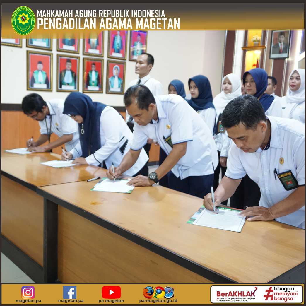 Magetan | pa-magetan.go.id | Pengadilan Agama Magetan melaksanakan Pembacaan Dan Penandatanganan Pakta Integritas Oleh Seluruh Hakim Dan Aparatur Pada Pengadilan Agama Magetan yang dilaksanakan di Media Center Pengadilan Agama Magetan.