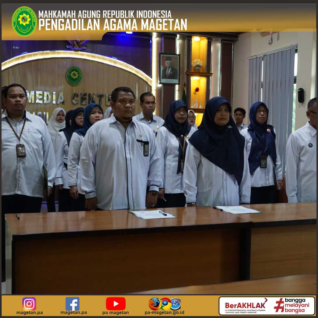 Kegiatan yang dipimpin langsung oleh Ketua Pengadilan Agama Magetan (YM. Yurita Heldayanti, S.Ag, M.H) ini dilaksanakan sebagai tindak lanjut atas instruksi Direktur Jenderal Badan Peradilan Agama (Dr. Drs. Aco Nur, S.H, M.H) dalam rangka peningkatan Integritas Pejabat Pimpinan Tingkat Banding dan Tingkat Pertama di Lingkungan Peradilan Agama Mahkamah Agung RI.