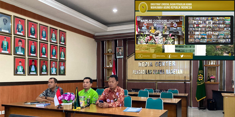 Magetan | pa-magetan.go.id | Panitera Pengadilan Agama Magetan (Drs. Mat Busyiril, MH) didampingi Jurusita (Moh. Muclis Nurhadi) dan Jurusita Pengganti (Subban Kafrowi, S.Ag) mengikuti Bimbingan Tenaga Teknis (jurusita dan Jurusita Pengganti) di Lingkungan Peradilan Agama, Jumat 16 Desember 2022. Bimbingan Teknis yang diselenggarakan secara Daring oleh Direktorat Jenderal Badan Peradilan Agama Mahkamah Agung Republik Indonesia ini bertujuan untuk meningkatkan kualitas dan kapasitas teknis khususnya Jurusita dan Jurusita Pengganti di Lingkungan Peradilan Agama dalam permasalahan teknis yustisial.