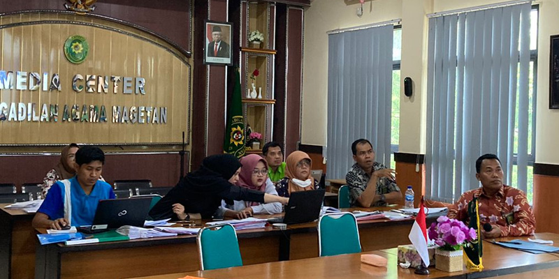 Didampingi oleh kasir, pengelola ATK, pengelola delegasi serta bendahara pengeluaran, Panitera Pengadilan Agama Magetan mengikuti acara Pembinaan dan Pengawasan ini dari Ruang Media Center Pengadilan Agama Magetan. Kegiatan yang yang langsung dipimpin oleh Panitera Pengadilan Tinggi Agama (Ibu Hj. Siti Romiyani, S.H., M.H). Pengawasan dilakukan dengan memeriksa dokumen keuangan perkara di Sistem Informasi Penelusuran Perkara (SIPP) Pengadilan Agama Magetan juga keuangan perkara yang di catatkan di Aplikasi Sistem Informasi Mahkamah Agung Republik Indonesia (SIMARI).