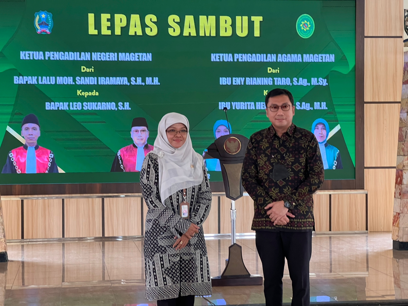 Sedangkan Ketua Pengadilan Pengadilan Agama Magetan kelas 1B sebelumnya (YM. Eny Rianing Taro, S.Ag., M.Sy) dipromosikan menjadi Wakil Ketua Pengadilan Agama Nganjuk Kelas 1A, dan sebagai pengganti beliau saat ini adalah YM. Hj. Yurita Heldayanti, S.Ag., MH.