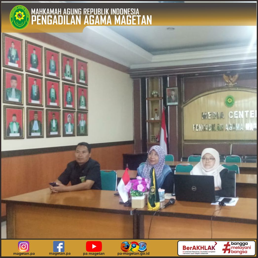 Magetan | pa-magetan.go.id | Pengadilan Agama Magetan yang diwakili oleh Ketua, Panitera, Sekretaris dan Aparatur Pengadilan Agama Magetan mengikuti Acara Penandatanganan Memorandum of Understanding (MOU) dan Kuliah Umum secara online dari Media Center Pengadilan Agama Magetan.