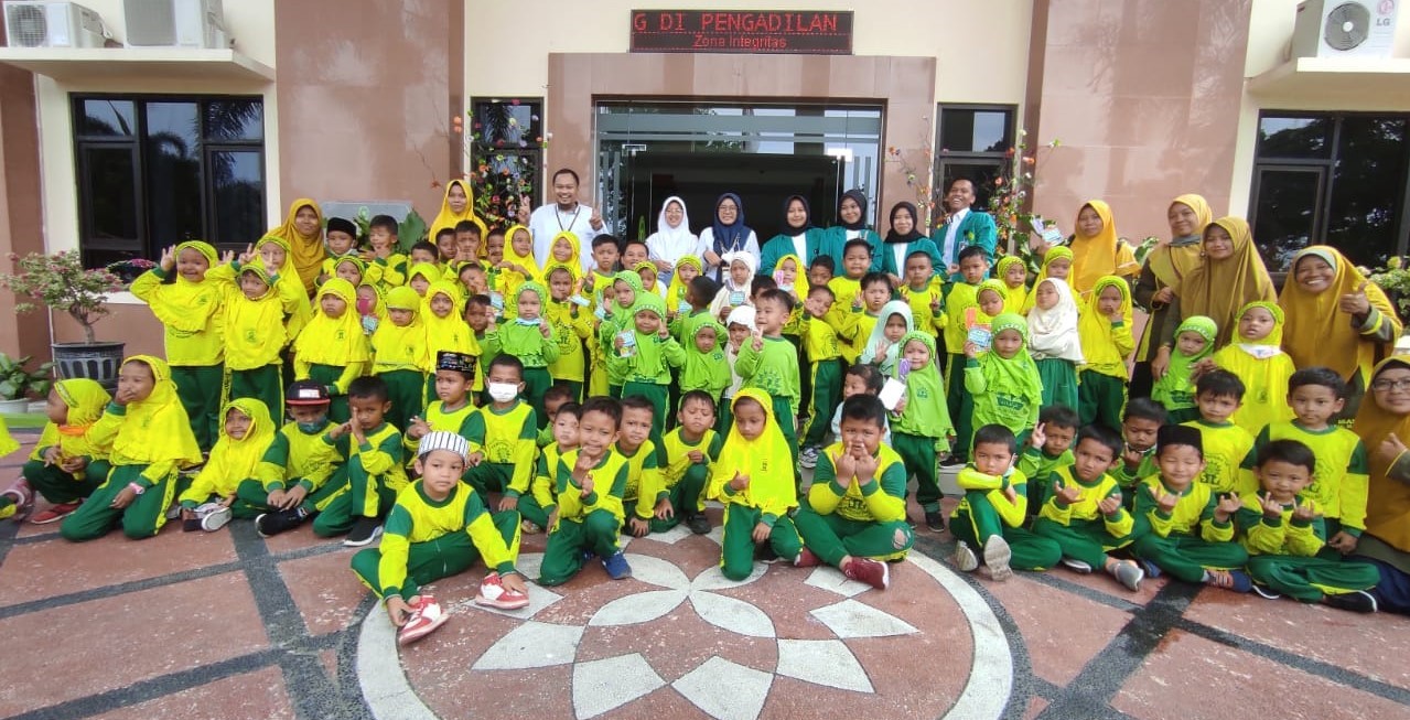 Anak-anak KB Aisyah "Al Wildan" dan TK Aisyah 10 Sukomoro tampak sangat senang tiba di Kantor Pengadilan Agama Magetan. Tak kalah antusias, Karyawan dan Karyawati Pengadilan Agama Magetan diikuti para mahasiswa magang juga menyambut kedatangan anak-anak ini dengan senyum dan tawa lebar. Suasana terasa akrab dengan tawa dan canda dari anak-anak KB Aisyah "Al Wildan" dan TK Aisyah 10 Sukomoro yang ikut dalam kegiatan ini.