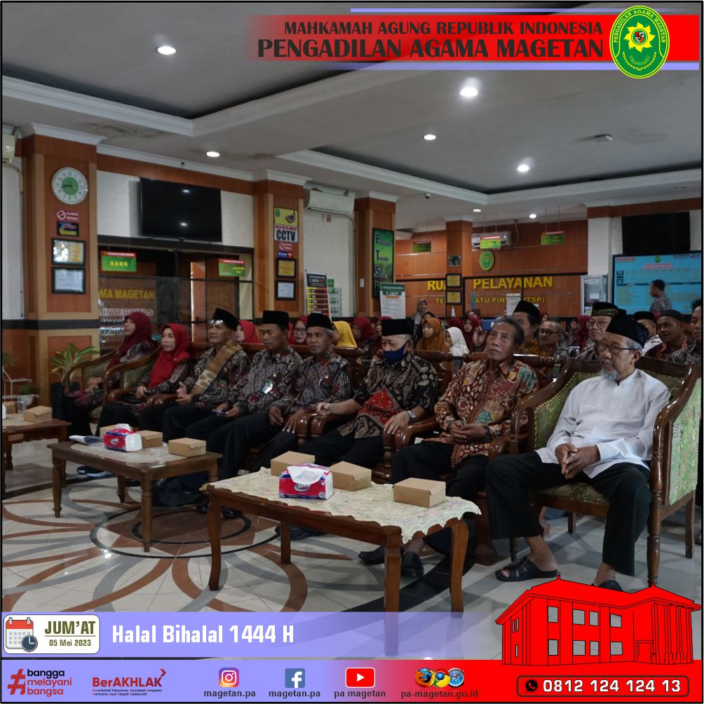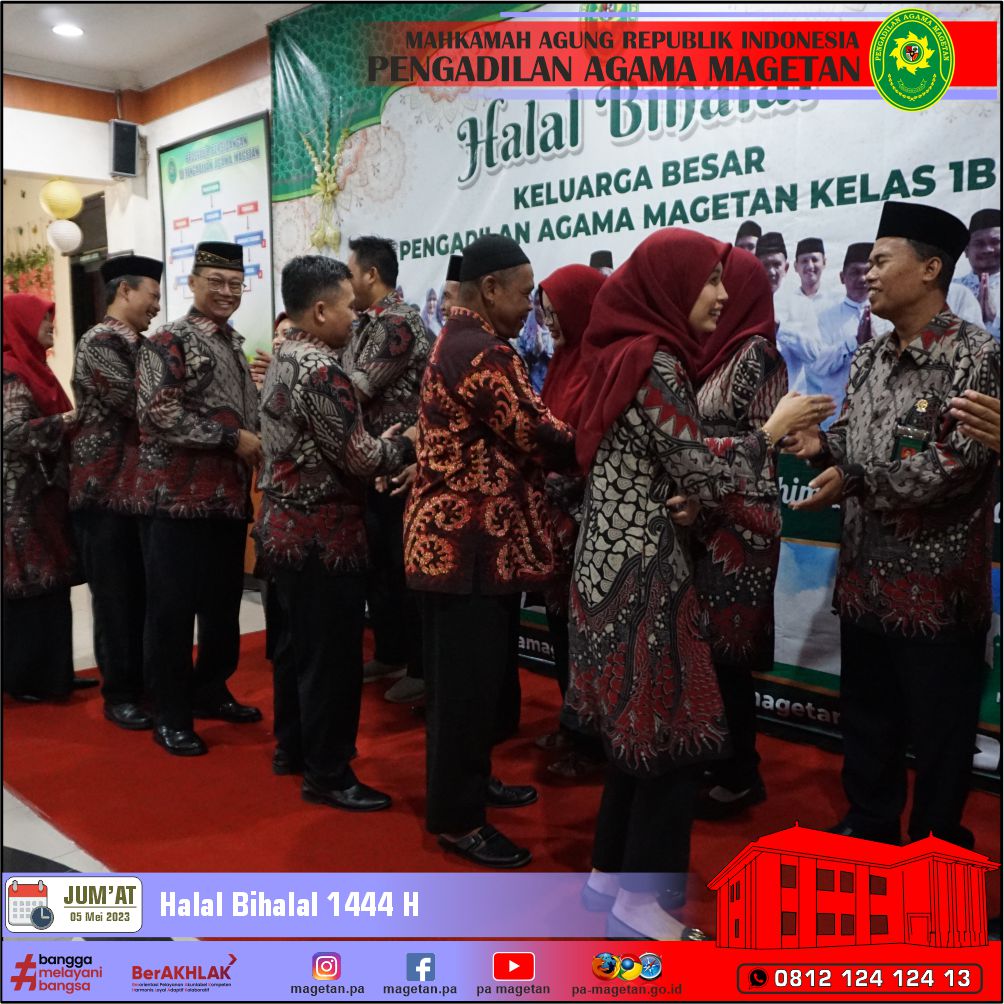 Magetan | pa-magetan.go.id | Pengadilan Agama Magetan mengadakan Halal Bihalal Idul Fitri 1444 H yang bertempat diruang tunggu Pengadilan Agama Magetan, Jum'at (05/05). Kegiatan yang diselenggarakan dalam rangka meningkatkan tali silaturahmi ini juga diikuti oleh para pensiunan pegawai Pengadilan Agama Magetan beserta keluarga besar Pengadilan Agama Magetan.