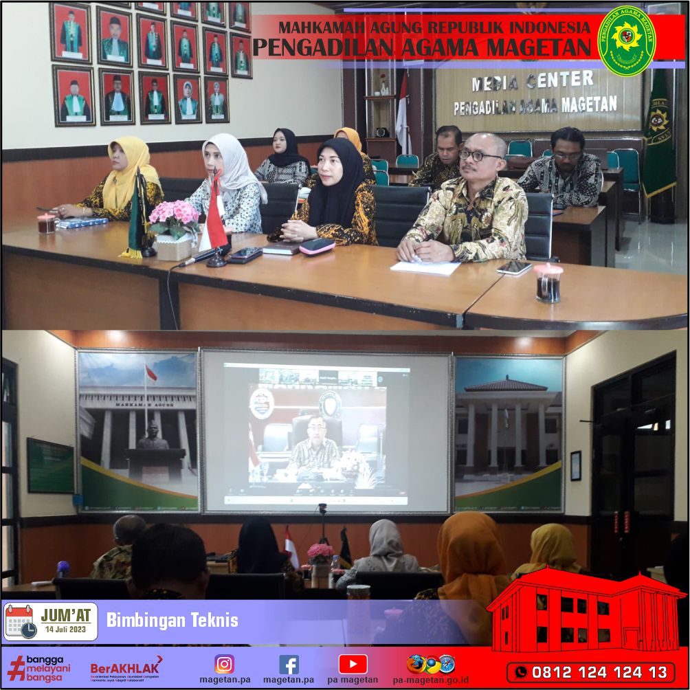 Magetan | pa-magetan.go.id | Pengadilan Agama Magetan diwakili oleh Wakil Ketua, Para Hakim, Para Panmud dan Para Panitera Pengganti mengikuti Bimbingan Teknis Peningkatan Tenaga Teknis Dilingkungan Peradilan Agama secara online dari Media Center Pengadilan Agama Magetan.