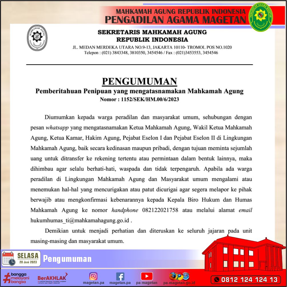 Pemberitahuan Penipuan Yang Mengatasnamakan Mahkamah Agung