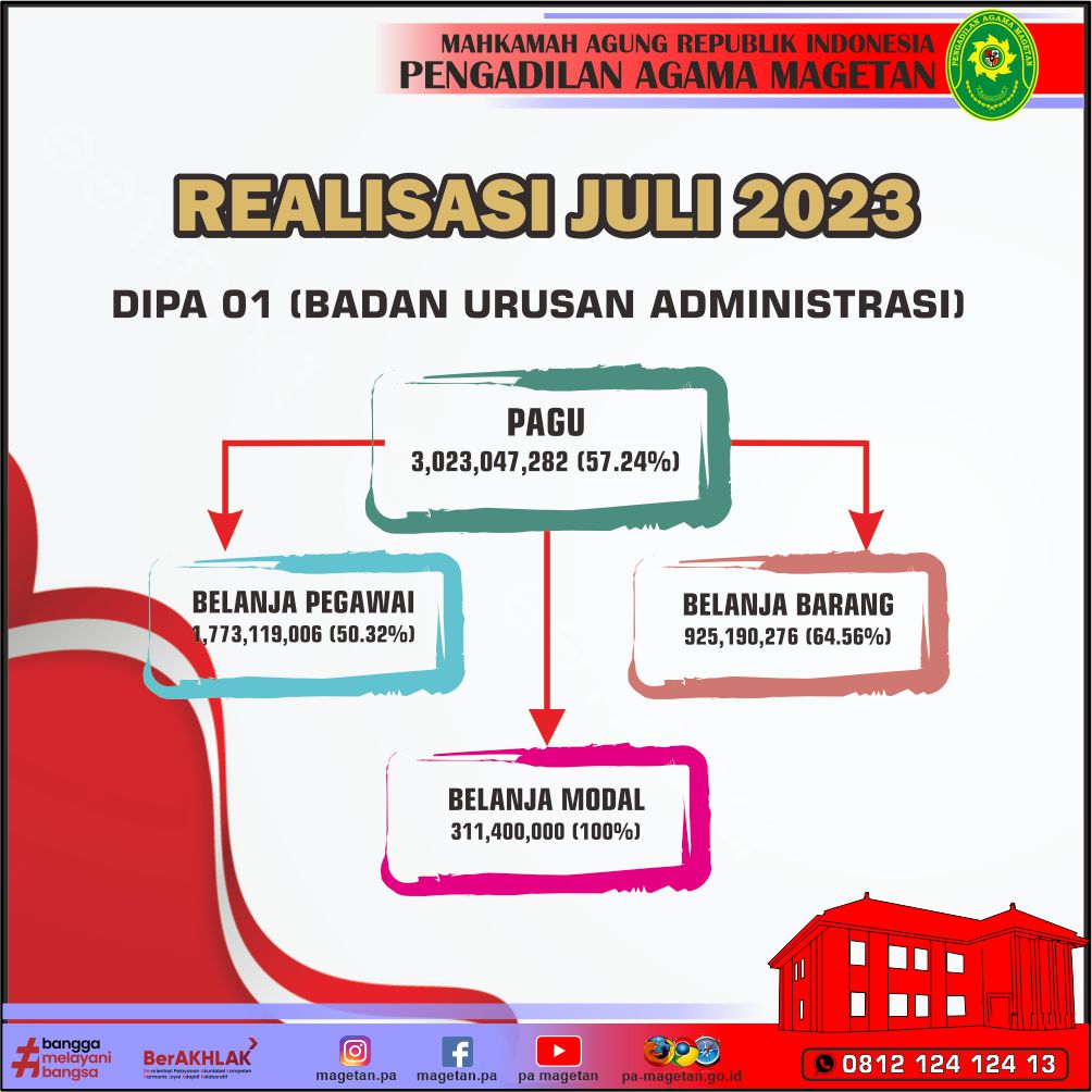Realisasi DIPA 01 & 04 Periode Juli 2023