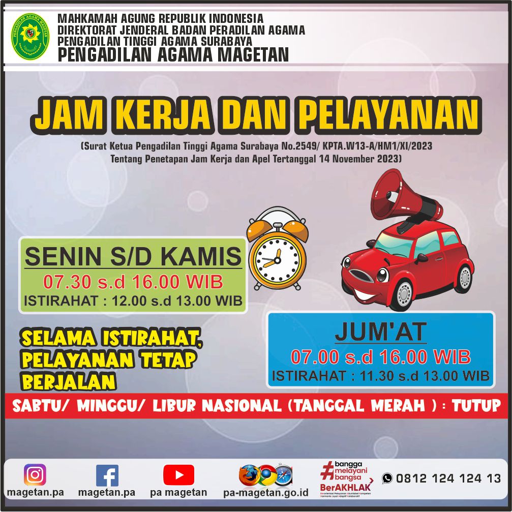 Jam Kerja & Pelayanan Pengadilan Agama Magetan Tahun 2024