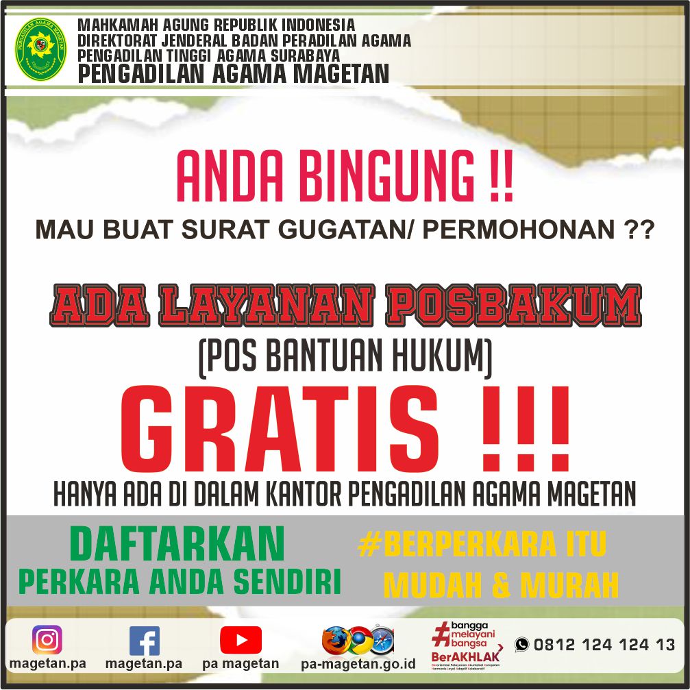 LAYANAN POSBAKUM (GRATIS !!!), HANYA ADA DI DALAM KANTOR PENGADILAN AGAMA MAGETAN