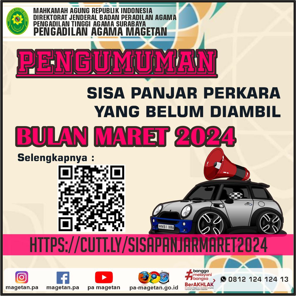 Sisa Panjar Perkara Yang Belum Diambil Bulan Maret 2024