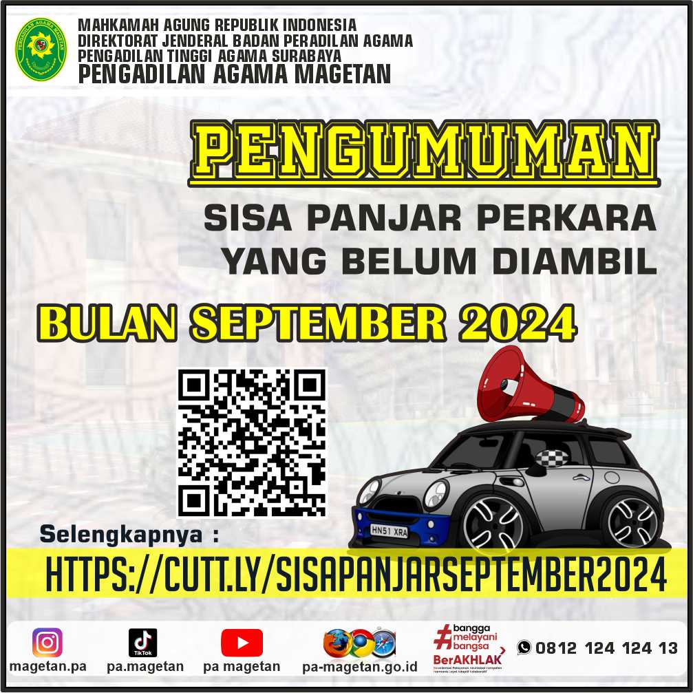 Sisa Panjar Perkara Yang Belum Diambil Bulan September 2024